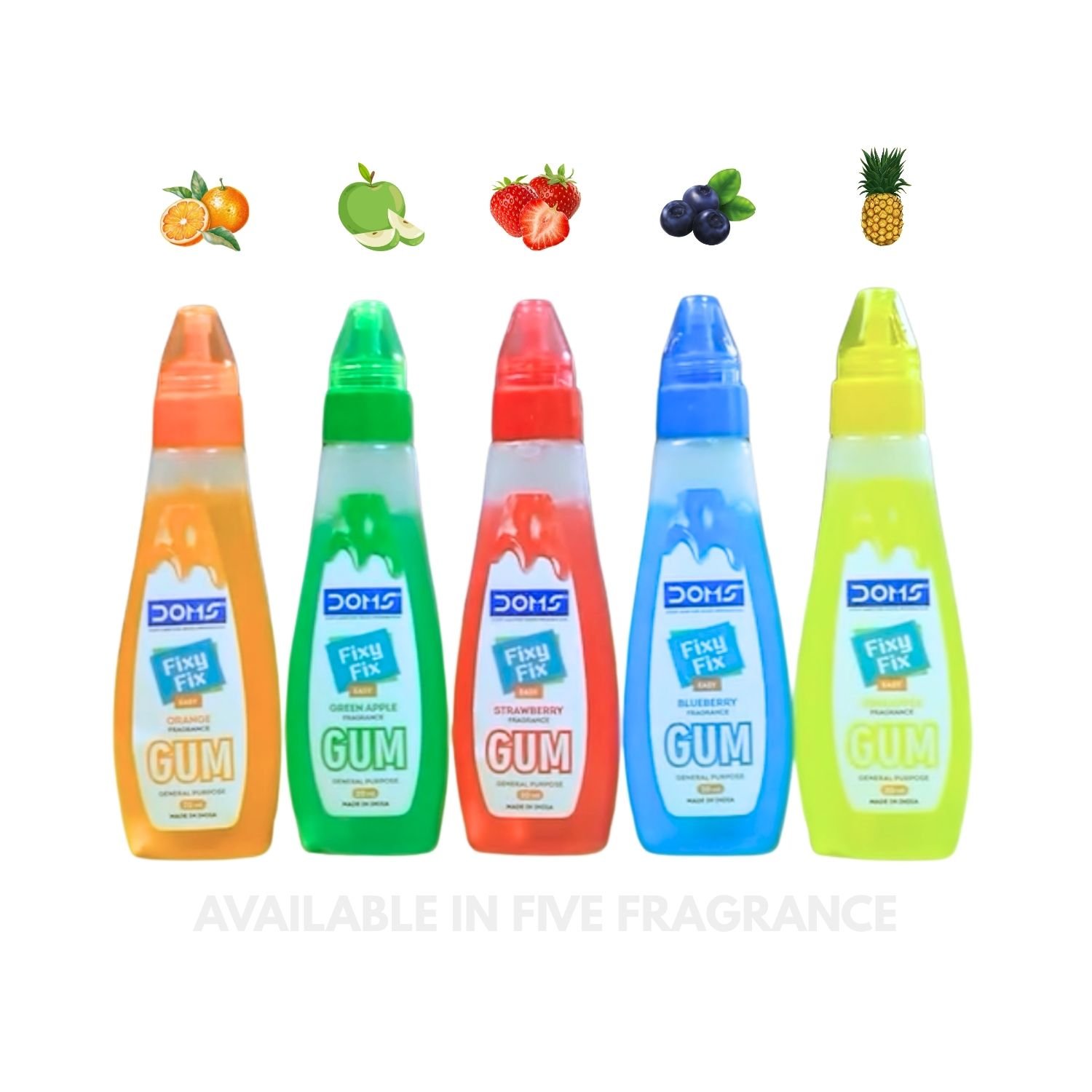 Doms Fixy Fix Fragrance Gum 20ml! Easy-to-use general-purpose adhesive with lovely assorted fruit fragrances. Perfect for crafts & school. MRP ₹5.